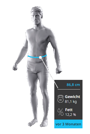 Den eigenen Körper zu verändern ist ein langer Weg. SCANECA visualisiert Ihre persönlichen Fortschritte und stärkt die Motivation. Alle Messergebnisse inklusive 3D-Avatar können jederzeit aufgerufen und verglichen werden.