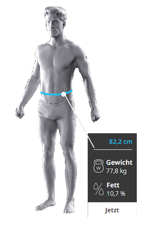 Die Messung dauert nur wenige Sekunden. Sie stellen sich in aufrechter Position vor den Scanner – vollständig bekleidet, lediglich ohne Jacke oder weite Kleidung. Das System erfasst Ihre Körperform und Haltung automatisch und erstellt daraus ein präzises 3D-Modell mit allen relevanten Messpunkten. Direkt im Anschluss erhalten Sie Ihre Ergebnisse.